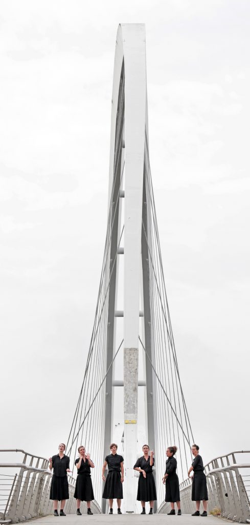 Une partie de ce programme est actuellement en tournée avec la Débordante Compagnie d’Héloïse Desfarges, sur le spectacle « Loin ». Pour cette chorégraphie sur 270 mètres en profondeur de champ, six femmes déambulent dans l’espace public, en silence et à voix nue. Elles évoquent à la fois la passante, la travailleuse, la révolutionnaire, l’espiègle, l’amie, la mère… et tant d’autres figures féminines !
